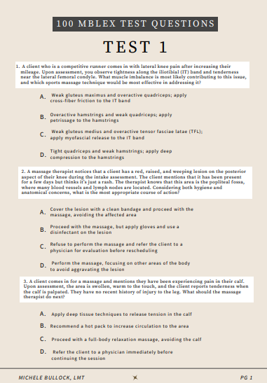 Download this 100-question MBLEx practice test to see where you stand! It includes a full answer key and a topic breakdown so you can pinpoint which areas need more study. Set a timer for 110 minutes, find a quiet space, and take it like the real thing—this is one of the best ways to build confidence and improve your score on the MBLEx.